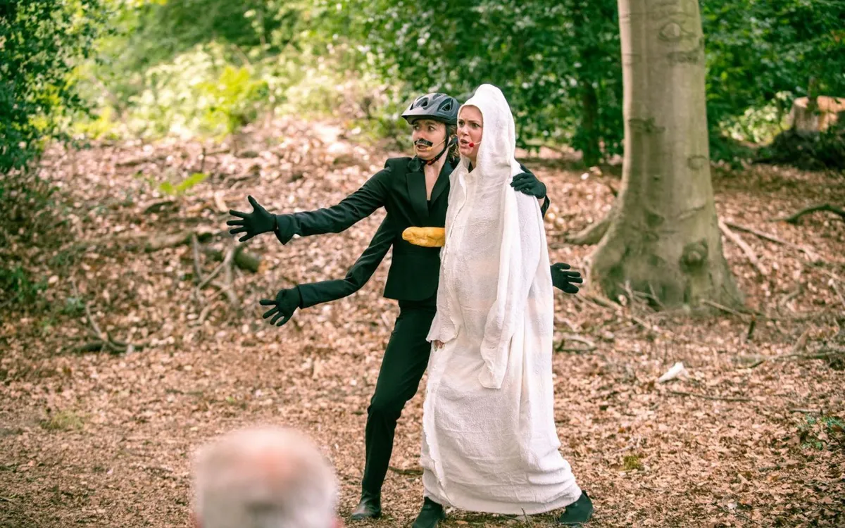 De natuur kan veel over de mensenwereld vertellen, weet schrijver, acteur en regisseur Luuk Haaze. Hij heeft 'Kom er bij' geschreven, een heerlijk, sprookjesachtig verhaal. Volgens Luuk is dat: humor en een onderliggende boodschap. Luuk ging op zoek naar verhalen uit de regio en trof een anekdote die het uitgangspunt werd voor zijn eenakter. ‘’Een rijke vrouw gaat trouwen met een arme jongeman. De moeder van de vrouw, ook rijk dus, vindt dat geen goed idee. Als je gaat trouwen, zegt de moeder, zorg dan wel dat je de baas blijft.’’ Luuk: ‘’Maar de man laat zich niet zomaar onderdrukken door de dochter en moeder. Om hen te imponeren begint hij dieren van de familie dood te schieten. Het is een verhaal over machtsrelaties. Ik heb gekeken wie in het dierenrijk zo’n machtsrelatie kan representeren en kwam uit bij een bijenkolonie.’’